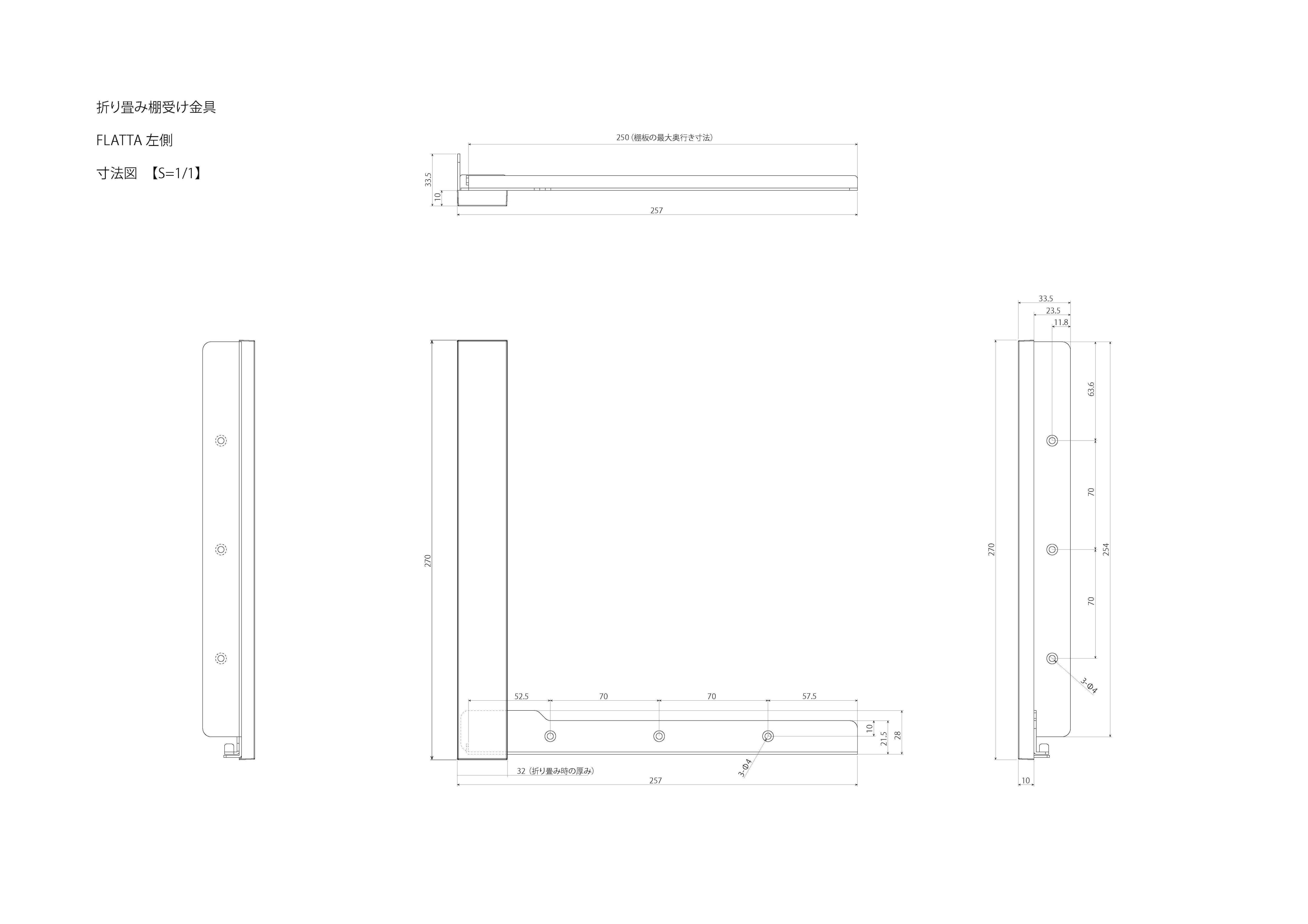 商品名:たたむと厚さ3cmになる棚受け FLATTA