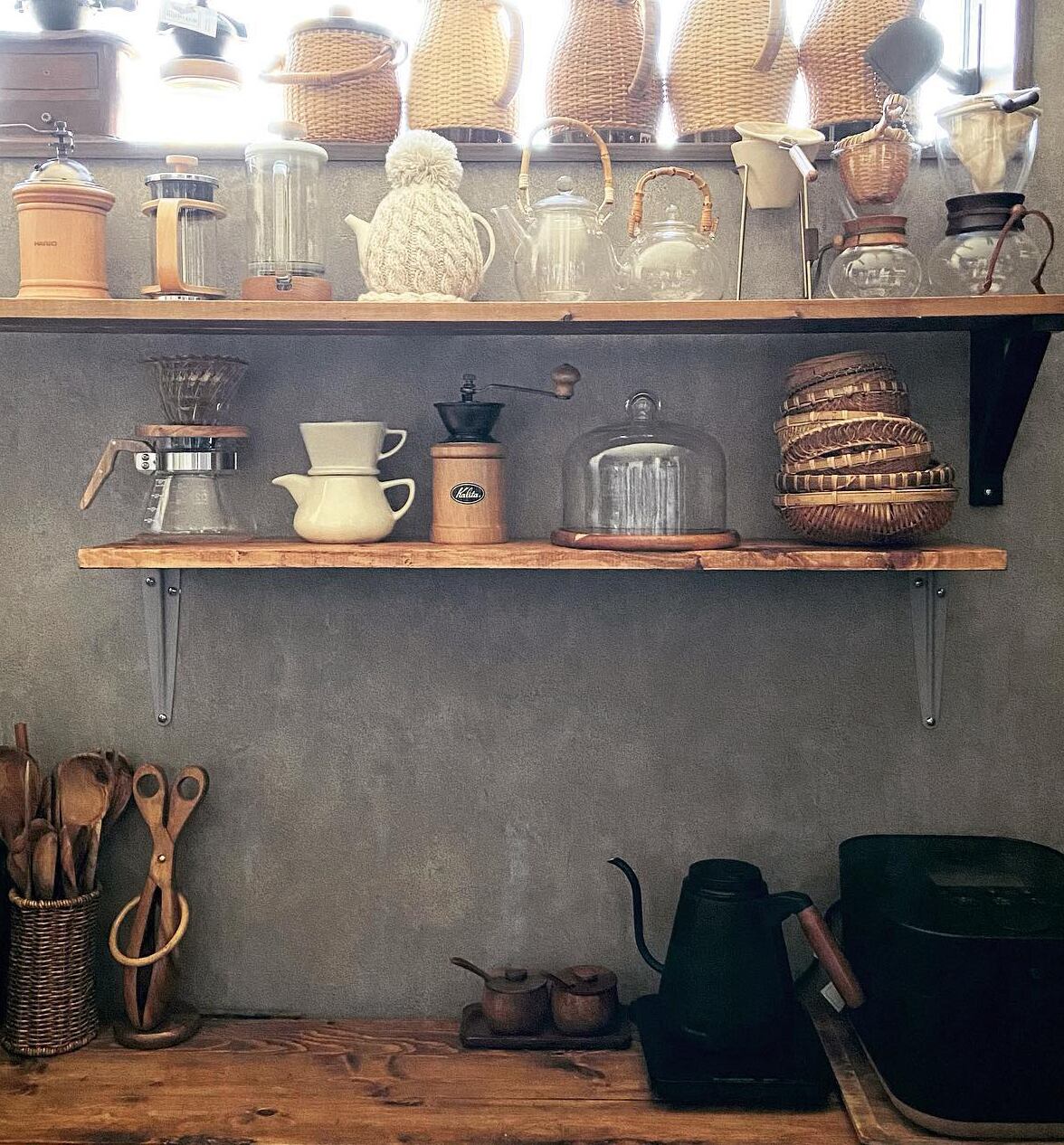 グレー、ブルー、ベージュ3種類の優しい色合いの棚受け金具